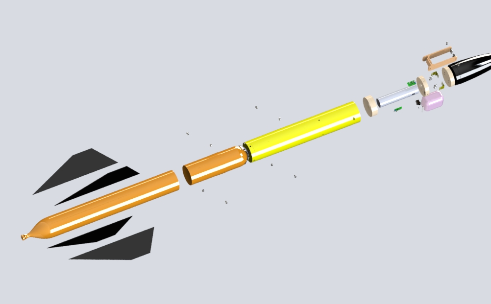Aerodynamic design and experimental testing of water rocket systems, including composite material shell design and ground launch system development.